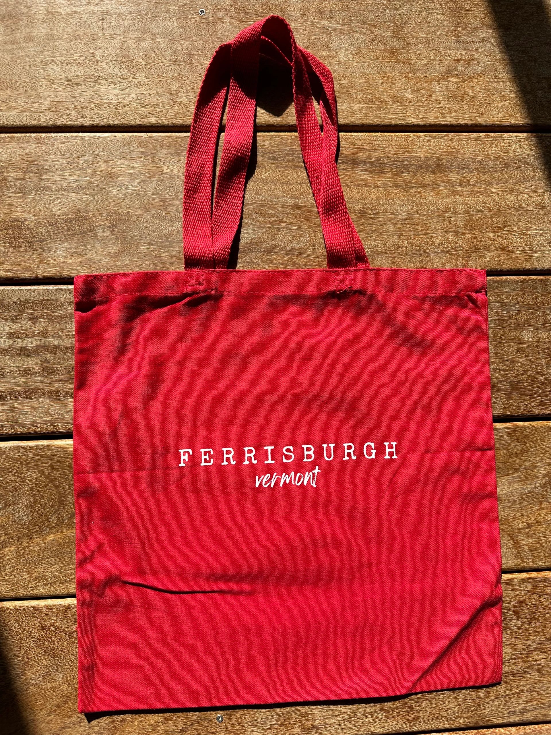 This red "Ferrisburgh, Vermont" canvas tote bag is great for either a quick run to the grocery store or to carry all your goodies after a full day of shopping.